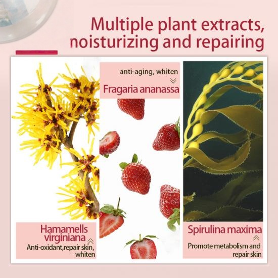 Strawberry essence facial sheet balance water and oil, thick and juicy, hyaluronic acid, not only hydrating but improve your skin tone, make the skin moist and fair.