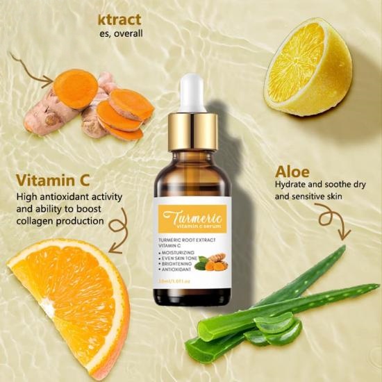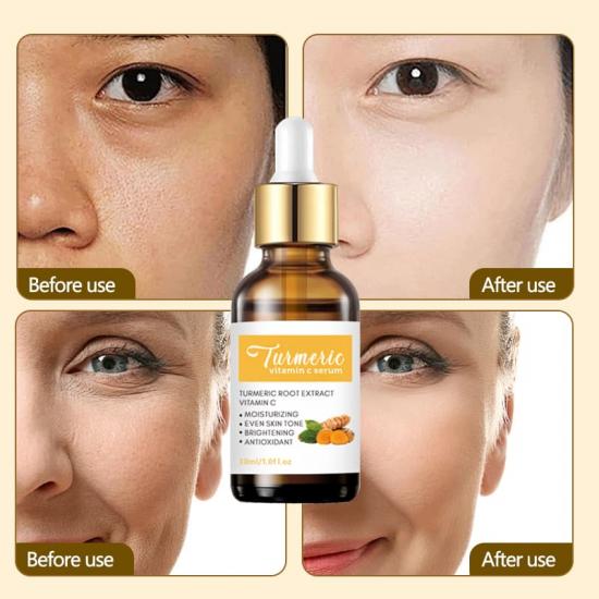 Our turmeric serum is a unique and effective acne skin care solution. Its rich active ingredients effectively remove dirt and impurities from pores by penetrating deep into the skin. This not only helps reduce the formation of pimples, but also reduces inflammation and redness, making your skin look clearer and brighter.
